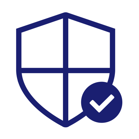 Illustration of a shield with a checkmark in the corner representing trusted transactions.